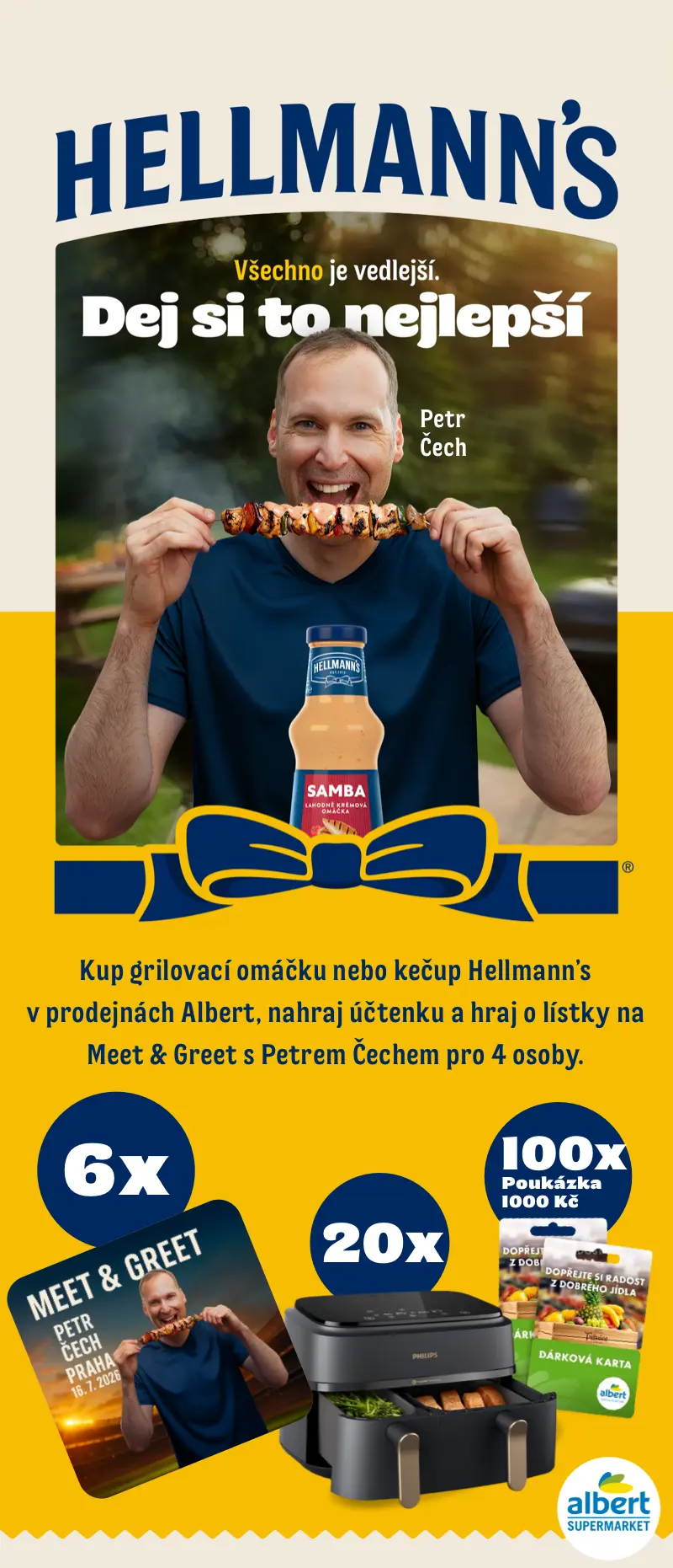 Kup alespoň 1 produkt z kategorie grilovacích omáček nebo kečupů Hellmann’s v prodejnách Albert.